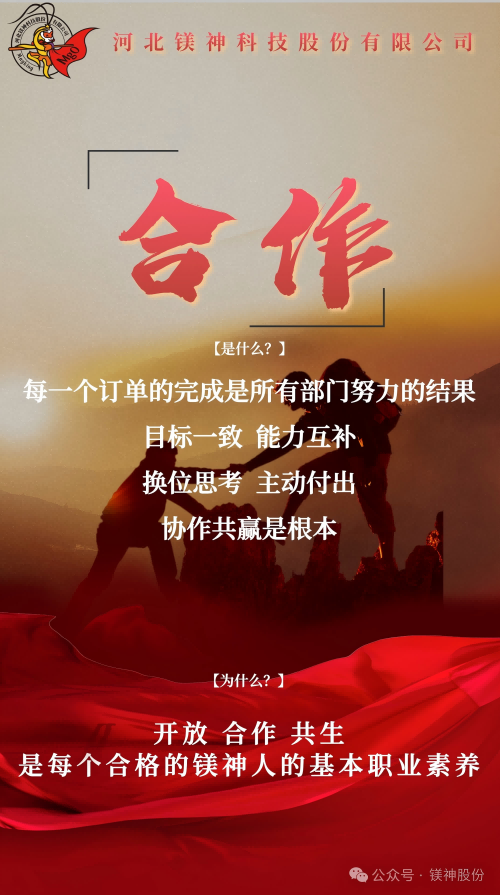 從太行山麓到走向世界舞臺的鎂質新材料領航者,鎂神科技以文化力量開啟新征程。近期,經過全體鎂神人的共創,承載著鎂神人精神基因的企業文化2.0升級版正式發布,同時公眾號將會開展“鎂神人企業文化故事”發布活動,它是指引鎂神人行動的燈塔,是我們凝聚團隊力量,激發創新活力,助力企業騰飛的重要舉措;是我們傳承精神基因,引領行業潮流,邁向世界舞臺的內生動力,是我們對“創建百年鎂神平臺”的堅定信念與承諾。
