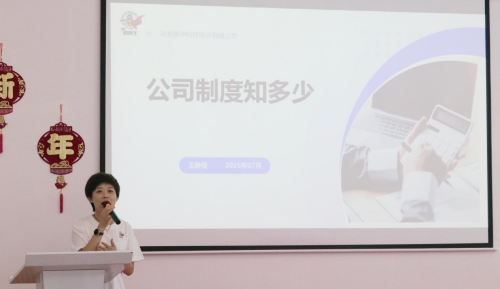為了讓新員工清楚地知道公司的各項規定,人資部王靜俊講解了人事手續、考勤休假、薪酬福利、出差報銷,讓新員工進一步加深了對公司制度的學習,為后續新員工順利開展工作提供了保障。