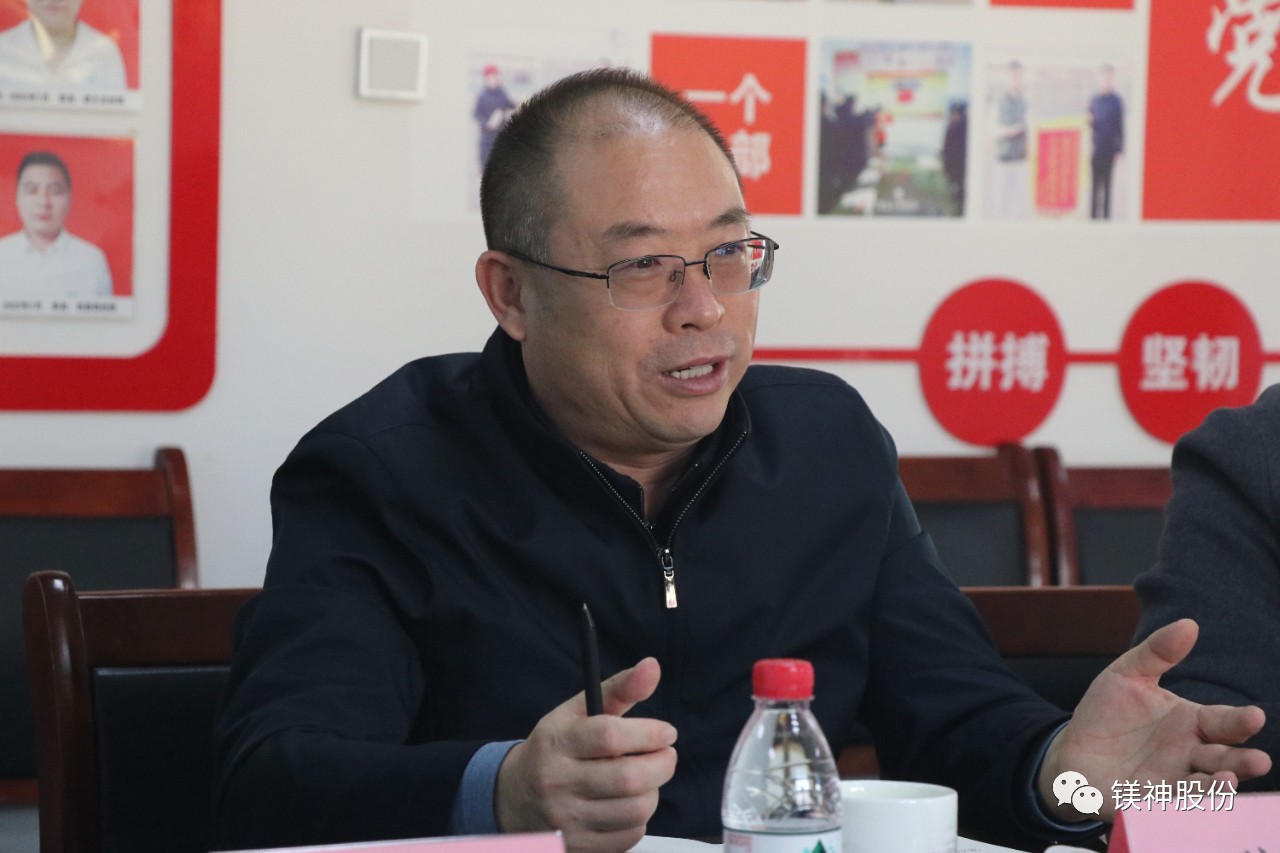 參觀結束后,王書記一行與鎂神科技董事長孫文及高管進行了座談交流。雙方就加強企業間合作、促進技術創新、推動完善鎂質新材料產業鏈等方面進行了深入探討。