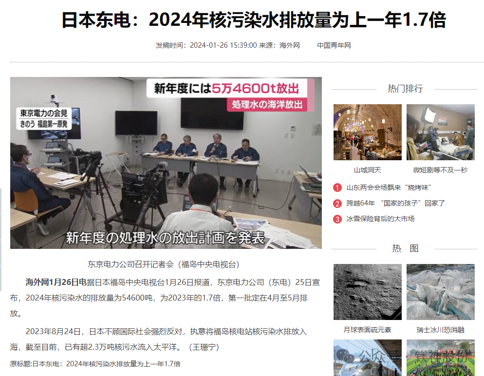 而自去年8月24日以來,日本不顧國際社會強烈反對,執意將福島核電站核染水排放入海,截至目前,已有超2.3萬噸核污水流入太平洋。