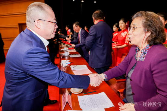 原科技部副部長、中國產學研合作促進會秘書長陳小婭向河北鎂神公司董事長孫文頒發榮譽證書和獎牌