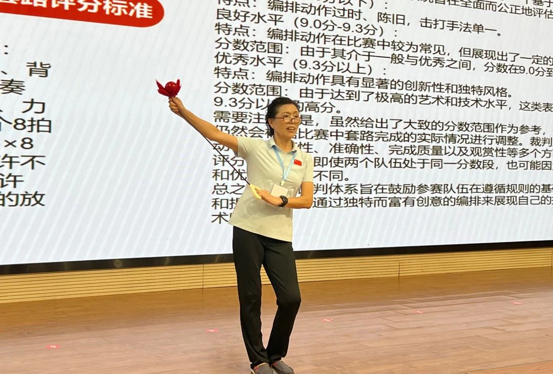 在為期三天的活動中,不僅有健身球操競賽規則的解讀,還包括賽事活動的組織策劃及套路教學。