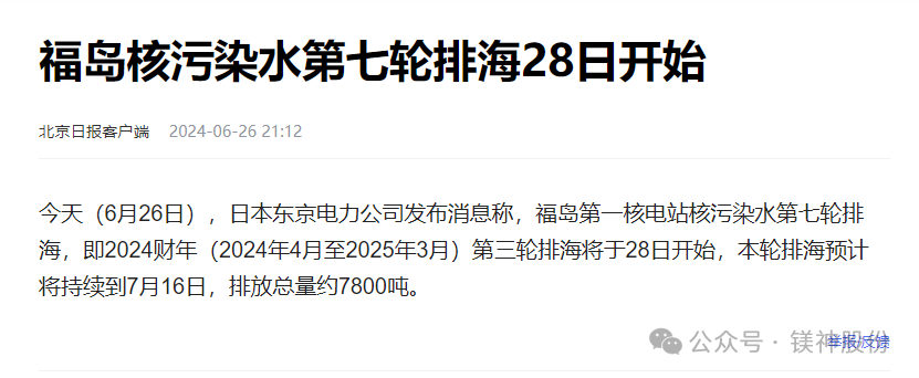 同時,我們也應(yīng)該堅決反對使用受核污水污染的海水提取鎂制品的行為,以保護(hù)我們的環(huán)境和健康。
